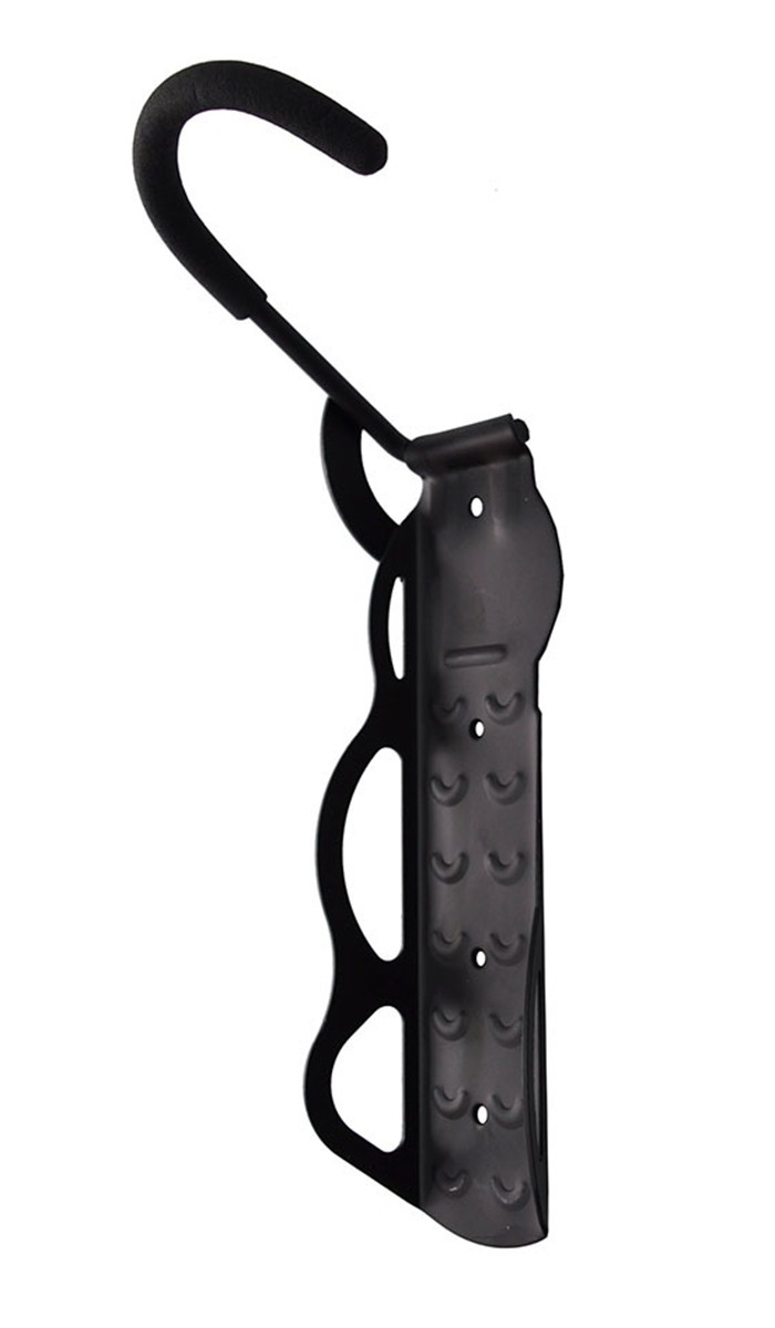 Кронштейн вішалка Huasion H-L01A, пристосування для кріплення велосипеда до стіни у вертикальному положенні за переднє або заднє колесо. Максимальне навантаження становить 25 кг. Прогумований гак перешкоджає пошкодженню обода. Кріплення в комплекті. Колір: чорний.
