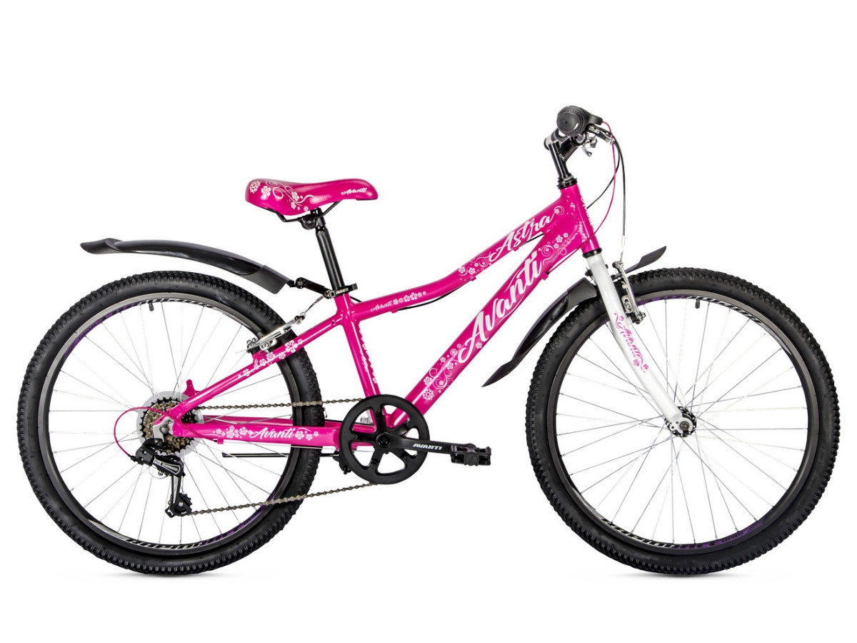 Надійний підлітковий велосипед для дівчаток 24 Avanti Astra. Рама із заниженою геометрією виготовлена з алюмінієвого сплаву з урахуванням особливостей юних леді. Діаметр коліс 24 дюйма розрахований на зріст велосипедистки від 130 см. до 150 см., і забезпечує високу маневровість велосипеда. Рекомендований вік дитини 8-13 років. Байк укомплектований жорсткою вилкою Avanti, якісною 6- і швидкісний трансмісією Shimano та ефективними гальмами v-brake. Компоненти Shimano гарантують якісну роботу та точне перемикання швидкісних режимів. Надійні гальма в поєднанні з гарними покришками гарантують безпеку маленької велосипедистки. Велосипед укомплектований пластиковими крилами та підніжкою. Комфортна та сучасна геометрія рами, якісні компоненти, чудове збирання та неповторний дизайн не залишить байдужим власника велосипеда. Доступність ціни за найкращої якості — Avanti!!!
